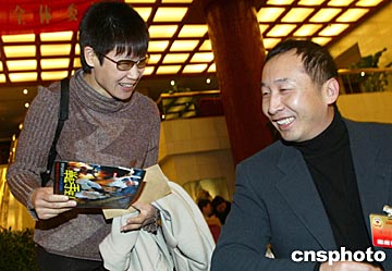 全國政協(xié)委員、導演馮小寧,二日在北京向剛剛報道的世界速滑冠軍葉喬波委員贈送他的新影片《舉起手來》海報。該片號稱是中國版的《虎口脫險》,是馮小寧推出的一部戰(zhàn)爭喜劇大片。中新社記者:滿會喬