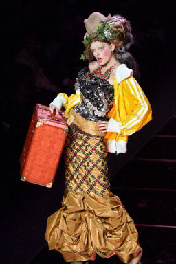3月6日,在巴黎2004/2005秋冬時裝周上,模特展示設(shè)計師John Galliano的另類時裝。