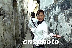 三月十日,參加“古鎮(zhèn)西塘”2004年國際旅游小姐大賽中國區(qū)總決賽的三十二名參賽佳麗,在浙江西塘古鎮(zhèn)拍外景,古樸的建筑更映襯出參賽選手的美麗。本次大賽的決賽將在十五日舉行。中新社記者:盛佳鵬