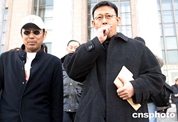 全國政協(xié)十屆二次會(huì)議三月三日在北京人大會(huì)堂開幕,全國政協(xié)委員、著名電影演員姜文(右)和陳道明參加大會(huì)。中新社記者:張勤