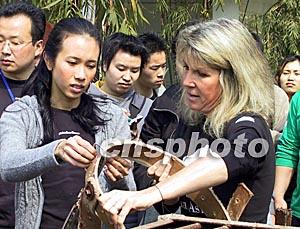 三月十二日,香港明星莫文蔚來到成都龍橋黑熊救護中心,捐款三萬八千三百八十八港元并出任首位“拯救黑熊愛心大使”。亞洲動物基金會的創(chuàng)辦人謝羅使臣女士給莫文蔚介紹養(yǎng)熊場的工具。作者:魯彥