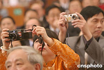 全國政協(xié)十屆二次會議十二日在北京人民大會堂閉幕,采訪大會的記者在會場外抓拍的陣勢頗為壯觀。中新社記者:滿會喬