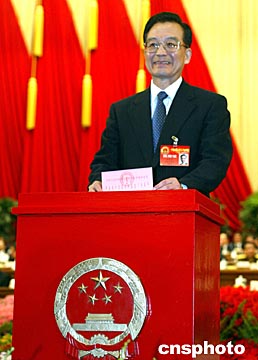 今天下午的閉幕大會(huì)首先表決通過了關(guān)于政府工作報(bào)告的決議。決議說,政府工作報(bào)告求真務(wù)實(shí),對(duì)一年來政府工作的回顧和總結(jié)實(shí)事求是,對(duì)今年政府工作的部署,貫徹了科學(xué)發(fā)展觀,任務(wù)明確,重點(diǎn)突出,切實(shí)可行。會(huì)議決定批準(zhǔn)這個(gè)報(bào)告。