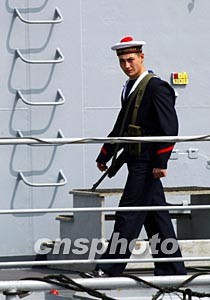 三月十四日,參加中法軍事演習(xí)的法國(guó)士兵在艦艇上巡邏,保障即將到來(lái)的演習(xí)萬(wàn)無(wú)一失。中新社記者:宋吉河