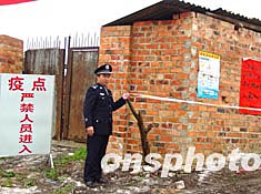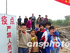 閉家紅、李志基夫婦牽著年幼的兒子,今天上午十時滿臉笑容走出了警方設置的警戒線,三十九天來,他們一家和其他六戶養(yǎng)殖戶二十二人一直被隔離在廣西南寧市興寧區(qū)北湖園藝場的一個小山丘上,因為在他們居住的這個山丘上發(fā)生了高致病性禽流感疫情。