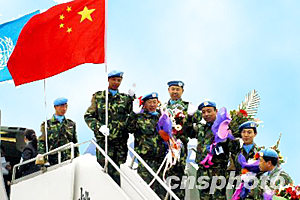2004年3月16日上午10時(shí)30分,沈陽(yáng)桃仙國(guó)際機(jī)場(chǎng)一架滿載70名維和部隊(duì)先遣隊(duì)官兵的專機(jī)起飛,直飛福州與那里的維和部隊(duì)汽車連會(huì)合共同組隊(duì)經(jīng)法國(guó)飛抵利比里亞首都。三月底由沈陽(yáng)軍區(qū)派遣的維和工程兵部隊(duì)將與先期到達(dá)的先遣隊(duì)會(huì)合,共同完成利比里亞的維和任務(wù)。夫子 攝