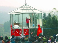 2∶45,三位雅安市公證處的公證人員對(duì)陳建民的隨身物品進(jìn)行了嚴(yán)格的檢查,在確定沒有任何違背挑戰(zhàn)活動(dòng)承諾的物品后,陳建民才被吊車送進(jìn)了14米高的玻璃房。