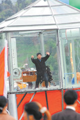 昨日上午7時(shí),記者來到碧峰峽的接待大廳外,看見陳建民已端坐在玻璃房中的書桌前開始看書。據(jù)公眾見證人說,陳建民早晨6時(shí)就起床了。記者撥通了陳建民的電話后得知,原來他把平時(shí)的生活習(xí)慣也帶進(jìn)了玻璃房。他告訴記者,平時(shí)他就習(xí)慣6時(shí)起床,所以前晚11時(shí)許他睡下時(shí)就定好了早晨6時(shí)的鬧鐘!敖^食第一晚,我睡得比平時(shí)輕松。因?yàn)槠綍r(shí)晚上還有病人來求診,睡不安穩(wěn),昨日我一覺就睡到早上,像在休假。”