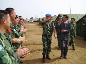 歡迎儀式結(jié)束后,林大使在周紹瑞參謀長及中國維和部隊各分隊領導的陪同下,視察了中國維和部隊營地,并看望了各級指戰(zhàn)員。