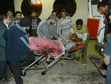 圖為哈馬斯精神領(lǐng)袖亞辛的尸體被送到加沙城的示法醫(yī)院。