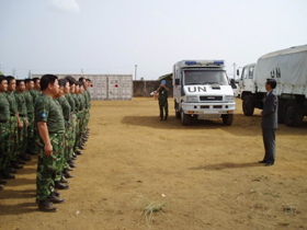 在歡迎儀式上,林大使向維和人員簡(jiǎn)要介紹了當(dāng)?shù)匦蝿?shì)和中利雙邊關(guān)系情況。指出,中利關(guān)系雖經(jīng)曲折,但兩國(guó)人民向來(lái)友好。2003年10月,中利復(fù)交為兩國(guó)開(kāi)展在各個(gè)領(lǐng)域的友好合作奠定了政治基礎(chǔ)。中國(guó)政府將積極參加利和平進(jìn)程和國(guó)家重建。中方派遣維和人員參加聯(lián)合國(guó)在利維和行動(dòng)就是其中一個(gè)重要舉措。強(qiáng)調(diào),參加聯(lián)合國(guó)維和行動(dòng)是一項(xiàng)光榮而艱巨的任務(wù),希望我駐利維和官兵繼續(xù)發(fā)揮我軍的優(yōu)良傳統(tǒng),充分發(fā)揚(yáng)特別能吃苦、特別能戰(zhàn)斗的精神,不辱使命,展示我軍和平之師、威武之師、文明之師的良好形象,圓滿完成祖國(guó)和聯(lián)合國(guó)賦予的光榮使命,為發(fā)展中利關(guān)系,維護(hù)世界和平做出新的貢獻(xiàn)。