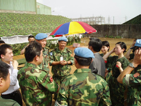 歡迎儀式結(jié)束后,林大使在周紹瑞參謀長(zhǎng)及中國(guó)維和部隊(duì)各分隊(duì)領(lǐng)導(dǎo)的陪同下,視察了我維和部隊(duì)營(yíng)地,并看望了各級(jí)指戰(zhàn)員。