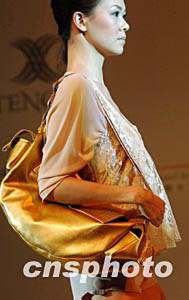 2004香港國際春季時裝材料展三月二十三日在香港會展中心開幕,展覽上設計師推出不同款式女士時尚手袋。中新社傳真 錢興強 攝