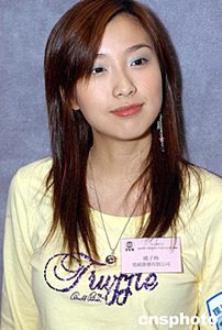 應(yīng)屆港姐冠軍曹敏莉、亞軍楊洛婷(右起)3月23日在香港出席《恒生銀行之協(xié)助警方撲滅青少年罪行比賽2004》揭幕儀式。作者:鄧慶樂