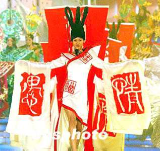 2004年4月12日晚上,在第三屆中國河南國際投資貿(mào)易洽談會(huì)開幕式大型文藝晚會(huì)上,一組根據(jù)中原歷史、歷史文物設(shè)計(jì)的時(shí)裝,給觀眾留下了深刻印象。馬健 攝