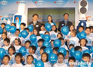 4月14日,著名口腔護(hù)理品牌Crest在香港推廣「健康牙齒 美麗笑容」宣傳活動,歌影紅星莫文蔚在活動中率領(lǐng)眾多小學(xué)生,一同宣誓成為《Crest笑容大使》,立志保持牙齒健康。作者:鄧慶樂