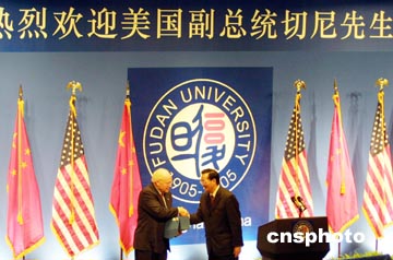 針對美國向臺灣出售武器的情況,復(fù)旦大學(xué)的學(xué)生向切尼發(fā)問:美國會采取什么樣的行動真正恪守“一個中國”的原則,并且反對“臺獨”?