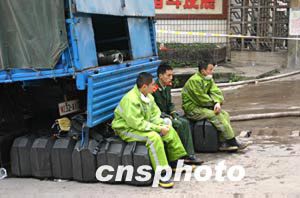 四月十七日,武警戰(zhàn)士在重慶天原化工總廠外嚴(yán)陣以待。十五日晚,重慶市天原化工總廠發(fā)生氯氣泄漏事故,有十五萬(wàn)人撤離.作者:鄒輝