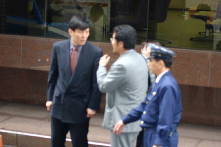 中國駐大阪總領(lǐng)館領(lǐng)事部負責(zé)人趙大維(左一)在現(xiàn)場與日本警方進行交涉。(《關(guān)西華文時報》叢中笑/春風(fēng)攝影報道)