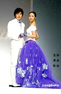 2004年4月22日,韓國服飾設(shè)計大師ANDREKIM的服裝發(fā)布會在上海舉行。權(quán)相宇與崔智友T臺上演藝?yán)寺矍椤?楊明靜 攝