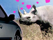 中新網(wǎng)4月23日電 據(jù)路透社報道,英國的野生動物園近日上演了精彩一幕:一頭發(fā)情的公犀牛欲與一輛游客的汽車發(fā)生“性關(guān)系”!