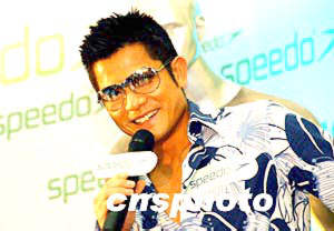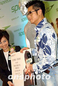 “香港活力動感大使”影視紅星郭富城,4月26日出席“世界最快泳衣Speedo Fastskin FSⅡ登陸香港”發(fā)布會,感謝該品牌支持“郭富城希望學!被I款計劃。作者:洪少葵