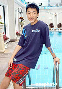 年青偶像歌手劉浩龍4月29日在香港出席國際泳裝品牌Arena 04泳裝展示派對。作者:鄧慶樂