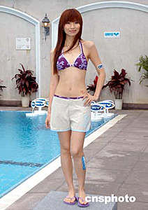 4月29日,國際泳裝品牌Arena在香港舉行春夏泳裝展示派對,圖為女模展示Arena今年新款泳裝。作者:鄧慶樂