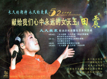 中新網(wǎng)4月30日電 昨天《北京娛樂信報》最黃金的廣告位(3版彩色)被田震的歌迷集體購買,在自己的偶像5月2日的生日將要到來的時候,提前和在生日當天分別以兩期半版廣告的形式刊登。