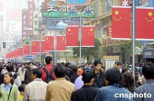 “五一黃金周”的第一天,上海街頭人頭攢動(dòng),鮮紅的國旗洋溢著濃濃的節(jié)日氣氛。作者:湯彥俊