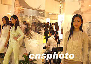 幾位身著春裝的姑娘在北京一家服裝店前擔(dān)任活動(dòng)模特。今春中國(guó)氣候時(shí)冷時(shí)熱,變化異常,商家隨之推遲夏裝上市。中新社記者:賈國(guó)榮