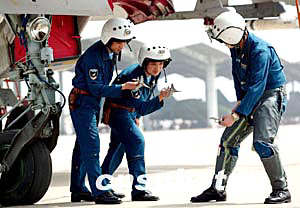解放軍濟(jì)南空軍航空兵某團(tuán)今春借裝備新飛機(jī)之機(jī),組織各類人員進(jìn)行業(yè)務(wù)訓(xùn)練,并對戰(zhàn)法進(jìn)行再度優(yōu)化創(chuàng)新。圖為飛行員利用飛行間隙研究新戰(zhàn)法。作者:崔文斌