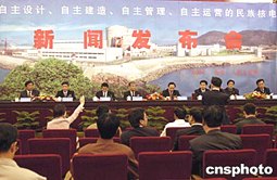 五月十日,中國核工業(yè)集團公司在北京人民大會堂舉行的“秦山核電二期工程1、2號機組全面建成”新聞發(fā)布會,介紹秦山核電二期工程2號機組5月3日凌晨1時15分正式投入商業(yè)運行的情況。作者:鄒憲