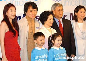 昨午于記者會(huì)上,成龍也將經(jīng)歷跟一眾分享,而聯(lián)合國兒童基金香港委員會(huì)副主席陳方安生昨日亦特頒授紀(jì)念品予成龍。