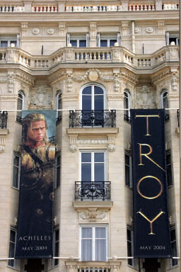 戛納電影節(jié)擁有世界上最大的電影交易市場,其影片成交額比其他全部電影節(jié)的交易量加起來還要多,所以海濱大道上的戶外廣告位是各大電影發(fā)行公司必爭之地,和去年《黑客帝國》鋪天蓋地的宣傳攻勢相比,目前還沒有任何一部影片能與其媲美。除了《壞教育》、《殺死比爾》、《特洛伊》少數(shù)幾部電影之外,相當數(shù)量的廣告位還在張貼著影展的官方海報。到記者發(fā)稿為止,街上多是載重貨車,卷成一捆捆的巨幅宣傳海報在兩三天之后將會把整條海濱大道裝點成一個露天電影市場。