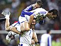 荷蘭隊球員歡抱著一團(tuán)