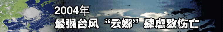 | 二○○四年第十四號(hào)臺(tái)風(fēng)“云娜”于八月十二日晚間八時(shí)許在浙江臺(tái)州溫嶺石塘鎮(zhèn)登陸。這是這一年以來四個(gè)在中國(guó)沿海登陸的熱帶風(fēng)暴中強(qiáng)度最強(qiáng)的一個(gè),也是自一九九七年以來對(duì)浙江影響最嚴(yán)重的臺(tái)風(fēng)。截至登陸當(dāng)晚二 |