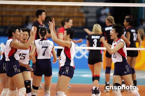 中新社雅典八月二十日電 中國(guó)女排在奧運(yùn)會(huì)女排預(yù)賽第四輪中憑借穩(wěn)定的發(fā)揮以三比0輕松戰(zhàn)勝德國(guó)隊(duì)。