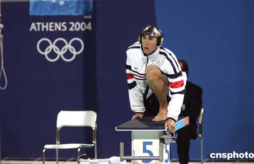 圖為當(dāng)?shù)貢r(shí)間8月19日,美國游泳選手菲爾普斯參加男子200米混合泳時(shí)登上跳臺(tái)的情景。
