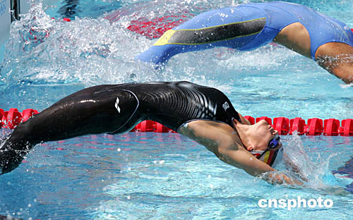 圖為在當(dāng)?shù)貢r(shí)間8月19日舉行的女子200米仰泳比賽中選手們的精彩表現(xiàn)。