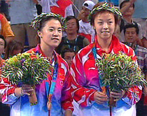 因?yàn)橐?guī)則限制,中國(guó)選手只能有一組進(jìn)入決賽,這也使得在決賽中王楠/張怡寧這對(duì)組合必須要擊敗對(duì)手。決賽中,王楠和張怡寧在第一局與對(duì)手展開(kāi)激烈爭(zhēng)奪,并以十一比九拿下這關(guān)鍵一局。此后她們發(fā)揮越來(lái)越好,也非常興奮,連續(xù)以十一比七和十一比六拿下第二和第三局,以總比分三比零領(lǐng)先。
