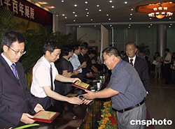 國(guó)務(wù)院僑辦副主任李海峰、四川省副省長(zhǎng)黃小祥、四川省僑辦主任周敏謙向海外僑領(lǐng)頒發(fā)紀(jì)念證書。