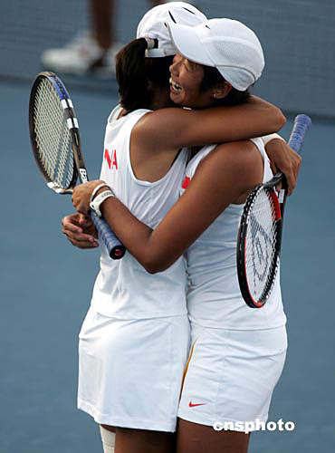 中新社雅典八月二十日電(記者 沈晨)李婷/孫甜甜今晚在雅典創(chuàng)造了中國網(wǎng)球界的新紀(jì)錄,她們二人在奧運(yùn)會網(wǎng)球女雙半決賽中耗時(shí)二小時(shí)十一分以二比一(六比二、二比六,九比七)戰(zhàn)勝阿根廷組合蘇亞雷茲/塔拉比尼闖入決賽,迄今中國選手在國際網(wǎng)球大賽中的最好成績。
