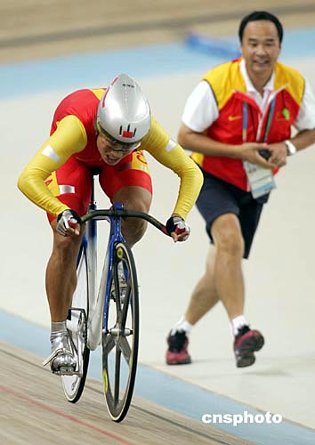 當(dāng)?shù)貢r間八月二十日下午,在雅典奧運會女子自行車五百米計時賽中,世界紀(jì)錄保持者江永華以微弱差距惜敗澳大利亞選手MEARES,獲得銀牌。中新社記者:毛建軍