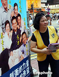 為迎接9.12香港立法會(huì)的選舉,香港街頭隨處可見醒目的參選標(biāo)語(yǔ)海報(bào)。圖為香港民建聯(lián)為參選立法會(huì)營(yíng)造氣氛。作者:錢興強(qiáng)