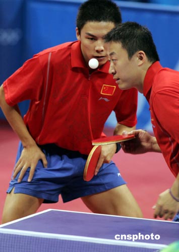 中國(guó)乒乓球男雙奪冠讓男隊(duì)主教練劉國(guó)梁如釋重負(fù)。在馬琳/陳玘奪冠后,他告訴記者:“現(xiàn)在我終于有所放心,畢竟我們保一爭(zhēng)二的目標(biāo),已經(jīng)完成了一半!