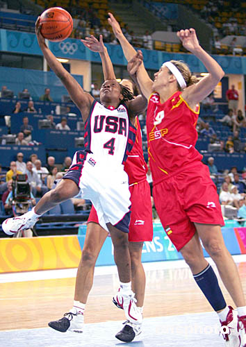 在當(dāng)?shù)貢r間8月20日舉行的女子籃球賽中,美國選手Johnson Shannon單手上籃技驚四座。