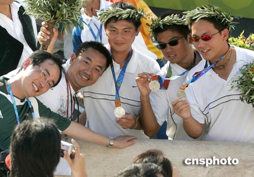 中國臺北男子射箭隊今天為臺北團(tuán)奪得本屆奧運會的第一塊銀牌,也創(chuàng)造了該射箭隊的歷史最佳成績。為此,射箭隊教練林政賢喜不自禁,連連說“滿意滿意!”