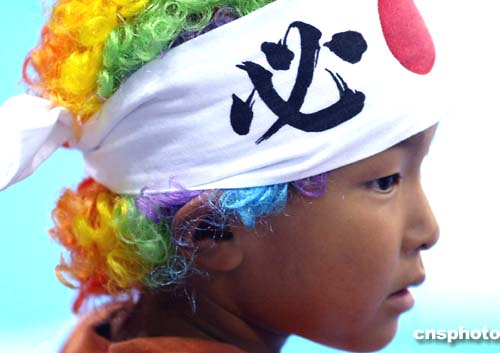 當(dāng)?shù)貢r間8月22日舉行的女子72公斤級摔交比賽場邊,一個打扮引人注目的小孩在為自己國家的運(yùn)動員們加油。