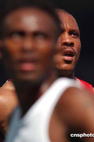 圖為美國著名短跑運動員格林在21日的男子100米預賽中。